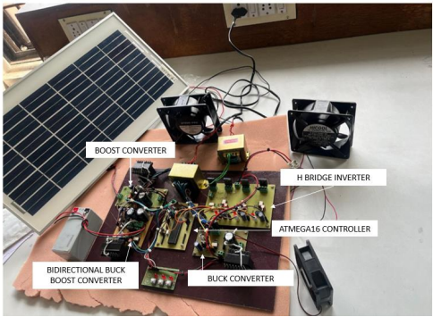 This project involved the design and analysis of a cost-effective photovoltaic (PV)-based nanohome system aimed at minimizing power conversion stages and improving energy efficiency. The system was structured to supply two DC loads and one AC load by prioritizing DC appliances, thereby reducing conversion losses. Key components included a boost converter to regulate PV output, a bidirectional buck-boost converter for effective battery charging and discharging, and an H-bridge inverter to supply AC loads. The complete system was modeled and simulated using MATLAB/Simulink to analyze power flow, converter performance, and battery behavior under varying load and generation conditions. Simulation results validated the feasibility of the proposed architecture, demonstrating reliable power management and cost-optimized operation suitable for sustainable and affordable housing applications.